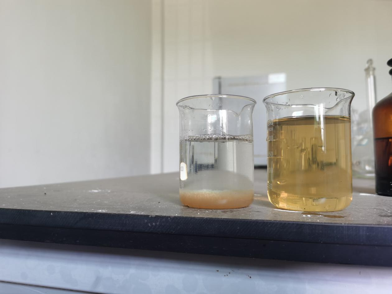 等待靜置10min后取上清液,測(cè)出PH值為7.0,總磷(TP)為1.8mg/L,氨氮23.2mg/L,該結(jié)果可達(dá)業(yè)主方排放要求。如果不考慮其他指標(biāo)的問(wèn)題,FQ-WD1的用量控制在35PPM即可色度達(dá)標(biāo)。